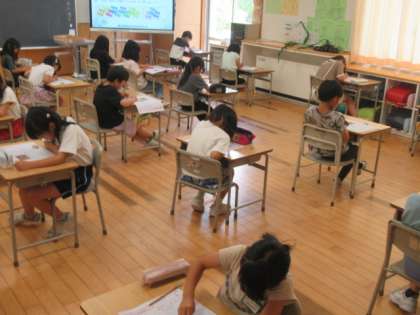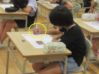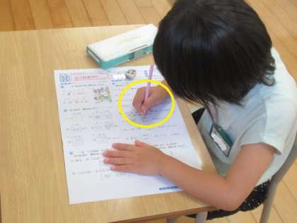 集中して、がんばっています・・・ 鉛筆の持ち方(3本の指先で持つ)が正しいですね。