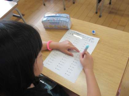 朝活動では、基礎計算(頭の回転を速くする)トレーニングに取り組む姿が見られます・・・