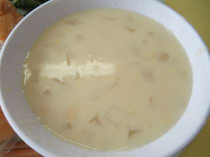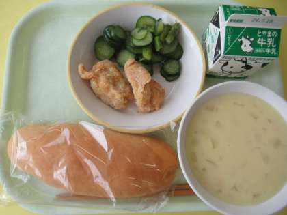 今日も美味しく出来上がっています。今日のメニューは「コーンポタージュ」ですね(3枚目の写真)。「ポタージュ」とは、フランス語で「鍋(なべ)」だそうです。すると、「コーンポタージュ」は「トウモロコシ鍋」ですね(笑)。また、「コーンスープ」と、どう違うのでしょうか? コーンの粒が残っているか、いないか、でしょうか?