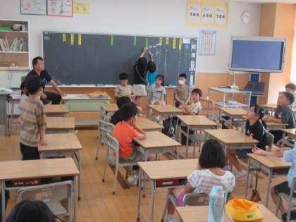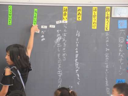 学級集会について意見を出し合っています。 「自分たちで話し合って決め、自分たちで実践する」を大切にしています。