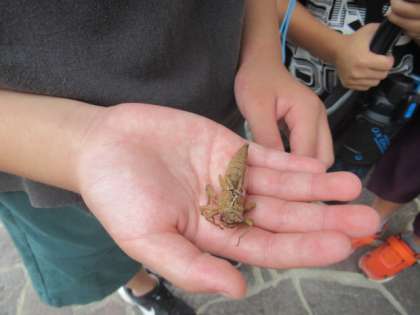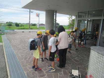 「何、何、何?」と人が集まっています。 「登校中に見付けた!」というものは・・・ 生きもの大好き!三成っ子です。