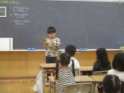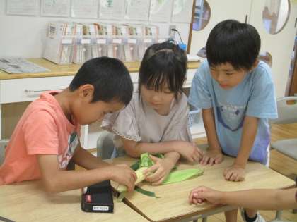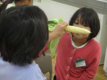 生活科 トウモロコシの収穫(2年生) 公開日 2024/07/17 更新日 2024/07/17 2年生 トウモロコシの収穫をしました。皮をむいて触ったり、匂いをかいだりしてトウモロコシを観察しました。