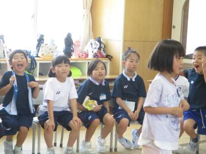 1年生は、みんなが楽しみにしていた「1学期がんばったよ集会」をしました。フルーツバスケットをしたり、どんじゃんけんをしたりしました。みんな、にこにこ笑顔で、仲良く楽しみました。