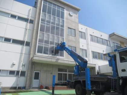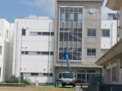 夏季休業中は、校内外の環境整備やメンテナンスの期間でもあります。 今日は、ガラス窓の清掃をしています・・・