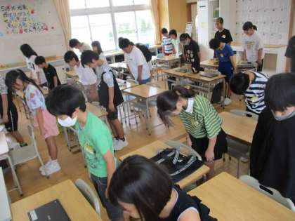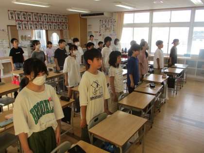 体育館は室温が高いため、始業式は校内放送で行いました。