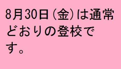 ご家庭においては、大雨警報や暴風警報等の気象情報には十分注意し、土砂災害や低い土地の浸水、用水や河川の増水に警戒をお願いします。加えて、今後の気象情報に十分注意するとともに、安全を最優先に登校することを徹底してください。