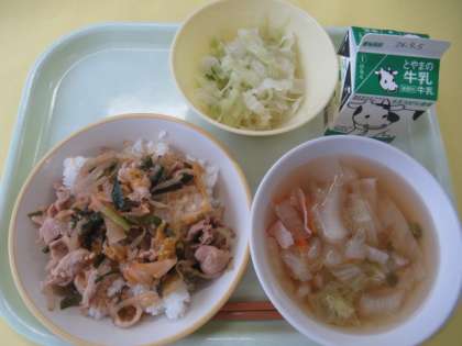 29日(木)今日の献立 公開日 2024/08/29 更新日 2024/08/29 給食室 ・ごはん → 豚キムチ丼 ・牛乳 ・ゆでキャベツ ・はくさいスープ ※11時45分、検食終了。 今日も美味しく出来上がっています。「豚キムチ丼」(2枚目の画像)は、学校給食「初メニュー」ではないかと思います。(違っていたらゴメンナサイ。)あまり辛くなく、食べやすくなっています。