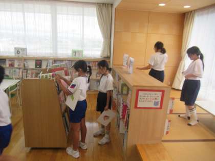 休み時間の図書室 公開日 2024/09/02 更新日 2024/09/02 4年生 休み時間にたくさんの子が図書室を訪れていました・・・ 「中秋(仲秋)の名月」(9/17、満月は9/18)に向けて、「月」特集の準備をしています。 お楽しみに!