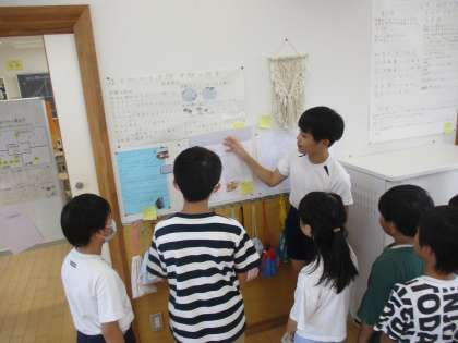 なかよし班で夏休みの自由研究紹介(6年) 公開日 2024/09/06 更新日 2024/09/06 6年生 なかよし班のみんなが頑張った夏休みの自由研究を紹介し合いました。 順番に回り、「どんなところを頑張ったの?」「これはどうやったの?」など質問をしたり、感想を言い合ったりしました。