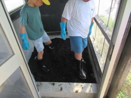 小屋の床に腐葉土を入れました・・・ 一生懸命です!