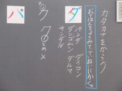 1年生 国語 公開日 2024/09/09 更新日 2024/09/09 1年生 カタカナの学習をしています・・・ 背筋をピン、そして3本の指先で鉛筆を持ち、ていねいに練習しています。 3本の指先で、正しく鉛筆を持っている子が多いですね。