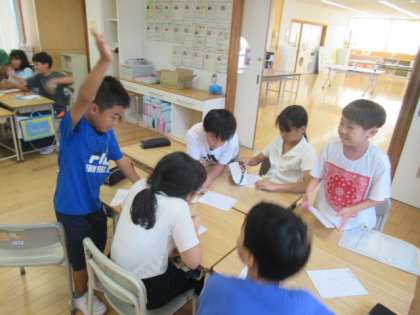 4年生 国語 公開日 2024/09/09 更新日 2024/09/09 4年生 クイズづくりを通して「言葉」の学習をしています・・・ C「□に入る、同じ(共通の)言葉は、なんでしょうか?」 C「なんだろう? むずかしいぁ」 C「あっ、分かったぁ!」