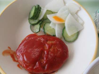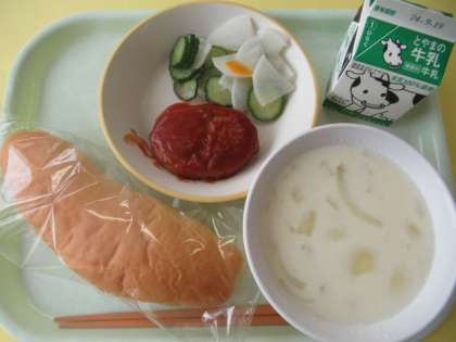 ・ハンバーグのケチャップかけ   ・クリームスープ