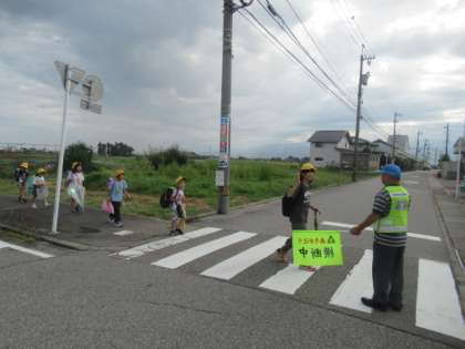 曇っていますが、蒸し暑い朝です・・・ がんばって登校してます。