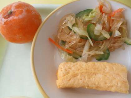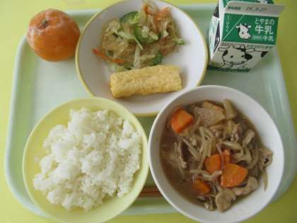 今日の献立 公開日 2024/09/20 更新日 2024/09/20 給食室 ・ごはん ・牛乳 ・卵ロール ・バンサンスー ・厚揚げの中華煮込み ・冷凍みかん ※11時40分、検食終了。 最近の学校給食では珍しくなった「冷凍みかん」が、今日のデザートです。今日のような暑い日には、最適なデザートです。ジャリジャリ? ザクザク? と果肉がシャーベット状です。