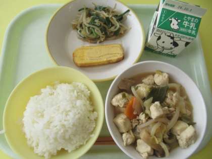 24日(火)今日の献立 公開日 2024/09/24 更新日 2024/09/24 給食室 ・ごはん ・牛乳 ・厚焼き卵 ・香味和え ・肉豆腐 ※11時55分、検食終了。 今日も美味しく出来上がっています。