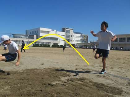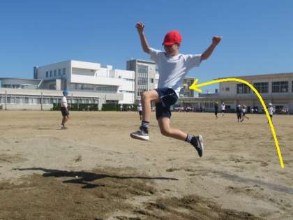 全校 チャレンジタイム(走り幅跳び) 公開日 2024/09/25 更新日 2024/09/25 2年生 13日(金)に行われた富山市チャレンジ陸上記録会「走り幅跳び」では、好成績を連発した6年生。 その6年生の跳び方を見習って・・・ 全速力で走って、踏切では「前に」ではなく、「上に高く」跳ぼうとする気持ちが大切なようです。