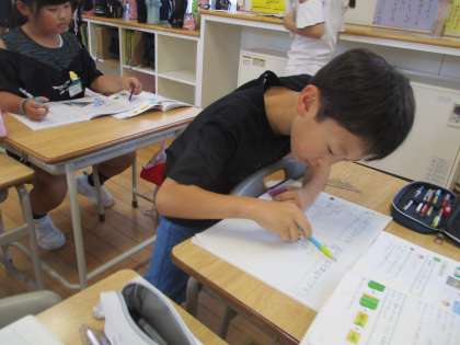 教室の中にある直角を探しました。棚や本、段ボール箱など色々なところから見付けることができました。