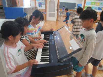 縄跳びをしたり、オルガン演奏をしたり、虫を捕まえたり・・・