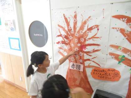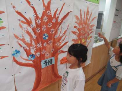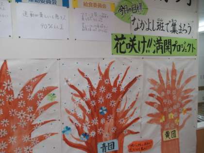 全校 新・あいさつ運動 公開日 2024/09/27 更新日 2024/09/27 2年生 「あいさつの木」に、1つ、2つ・・・と“花”が咲き始めました。 廊下で出会った子が、「わたしは、赤団だよ」「わたしは、黄団」と教えてくれました。 さらに「あいさつの輪」が広がり、たくさんの“花”が咲くといいですね。 運営委員会を中心に、がんばっています!