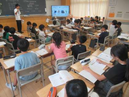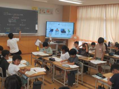 4年生 算数 公開日 2024/09/27 更新日 2024/09/27 4年生 「概数(がいすう)」の学習をしています・・・ T「上から1桁の概数にして……」 C「はい、約・・・です」 どこの数字(何の位の数字)を四捨五入するのか、迷いますね。 てきぱきと答えられて、感心します!