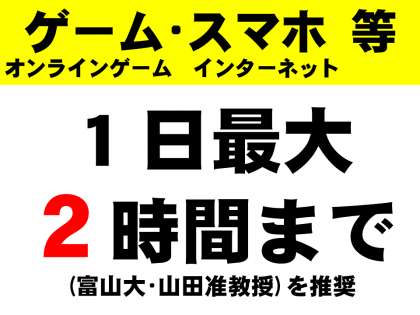 本校では、「学校だより9月号」でもお伝えしたように、健康被害(視力低下、依存症 等)や学力低下防止の点から「1日最大2時間まで」を推奨しています。
