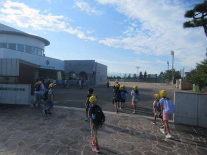 爽やかな秋晴れとなりました。 今日は、「全校なかよし遠足」! ワクワクしながら登校しています・・・