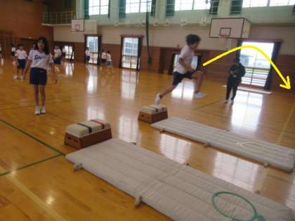 「自分の記録をのばそう!」と「走り幅跳び」の練習をしています。