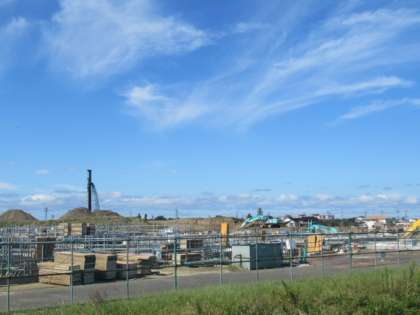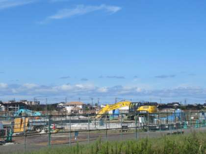 爽やかな秋晴れの下、校舎建設工事が進みます。