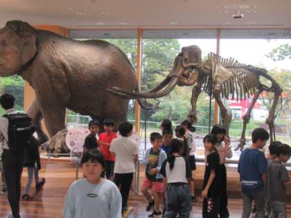4年生 校外学習 2 公開日 2024/10/07 更新日 2024/10/07 4年生 展示物を見学・・・ C「マンモスだぁ」 学芸員「マンモスではないですよ。あれは、ナ・・・・ウ」 様々な「石」「岩石」に、興味津々・・・