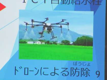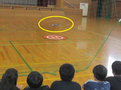 体育館へ移動し、ドローンの実演を見学しました・・・