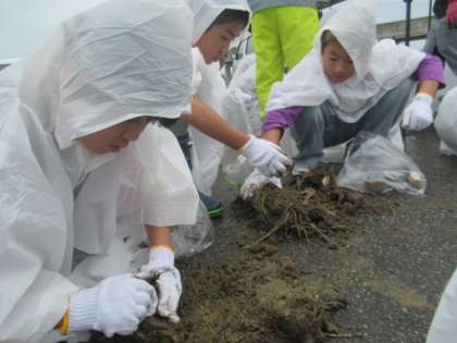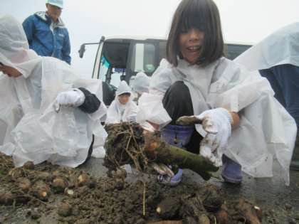 未来の農業担い手育成プログラム(5年生) 公開日 2024/10/09 更新日 2024/10/09 5年生 バスで農場へ移動し、「さといも」穫りを体験しました・・・ C「たくさん・・・ついているぅ」 C「なかなか・・・茎から取れないなぁ」