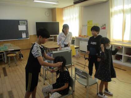 就学時健診(5年生) 公開日 2024/10/10 更新日 2024/10/10 5年生 「明るく、やさしく!」接するよう気を付けました・・・ 並んで歩いたり、しずかに待ったり、はきはきと挨拶したり・・・しっかりできています! 聴力検査・・・よく聞こえていますね!