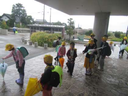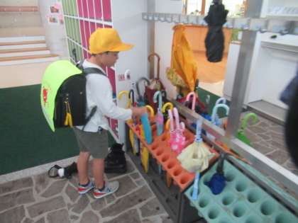 玄関の外で水滴を落としたり・・・ 傘立てに立てる前にクルクル巻いたり・・・ ちゃんと・・・できてきていて立派ですね!