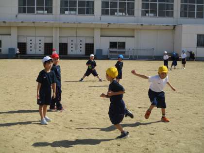 今日は、久しぶりにグラウンドで体育をしました。おにごっこをして思い切り走りました。秋晴れの中、元気いっぱい走ってとても気持ちよさそうでした。