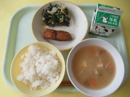18日(金)今日の献立 公開日 2024/10/18 更新日 2024/10/18 給食室 ・ごはん ・牛乳 ・揚げ魚のレモン味 ・磯和え ・なめこ汁 ※11時55分、検食終了。 今日も美味しく出来上がっています。免疫細胞の7割は腸内に存在しているともいわれており、なめこは腸内環境を整えるなど、風邪やインフルエンザなどの感染症の予防にも役立ちます。