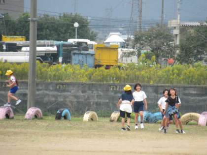 たくさんの子供たちがグラウンドに出て“秋”を楽しんでいます・・・
