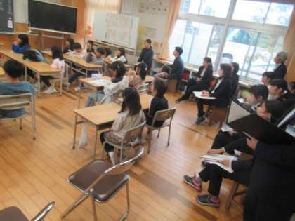 他校からの、約20名の教員が見守る中、緊張? しながらも頑張って自分の意見を話しています・・・