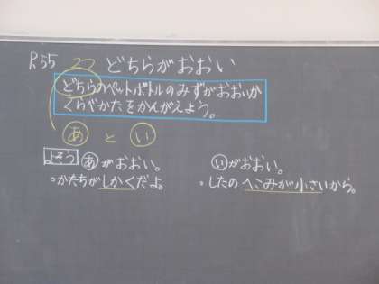 算数(1年生) 公開日 2024/10/31 更新日 2024/10/31 1年生 「おおい? すくない?」の学習をしています。 自分の考えを分かりやすく話そうとする子、顔をつないで聴き取ろうとする子など、みんなステキに成長しています。