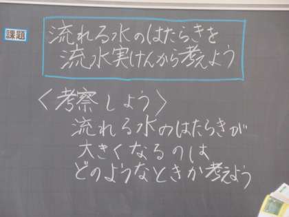 川など「流れる水のはたらき」について学習しています。 「流水実験」から「はたらき」を見つけているようです。