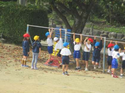 低い鉄棒から高い鉄棒で、技にチャレンジ・・・
