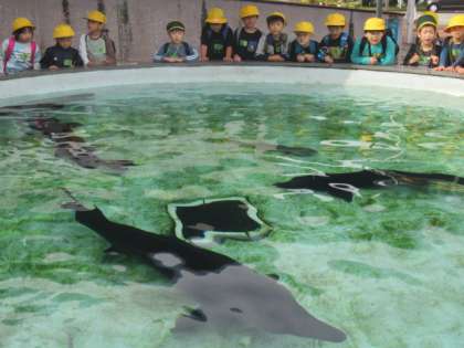水橋4校合同校外学習(1年生) 公開日 2024/11/01 更新日 2024/11/01 1年生 魚津水族館に到着! 水橋3校の到着を待つ間、「いとう」や「しろちょうざめ」を観察しました。 自分より体の大きい魚に、びっくり? 大喜び? こわがって? いました。