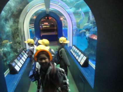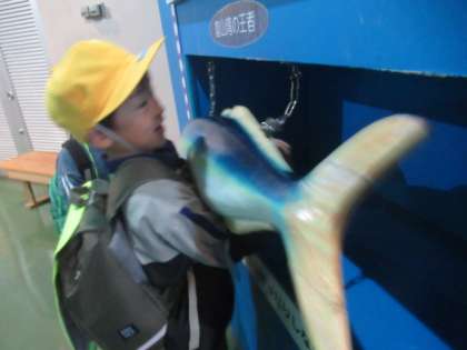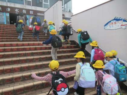 水橋4校合同校外学習(1年生) 公開日 2024/11/01 更新日 2024/11/01 1年生 いよいよ館内へ・・・レッツ・ゴー! 大興奮! 水中トンネルをとおったり・・・ ブリを持ち上げたり・・・ C「んー、おもいーっ」
