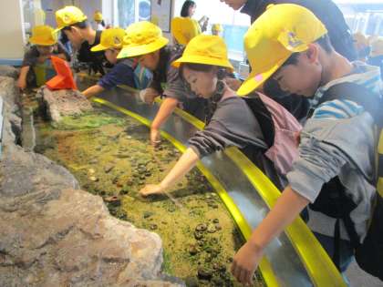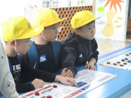 水族館の中では、他の学校のお友達と話をしながら、仲良く活動しました。名前もたくさん覚えました。