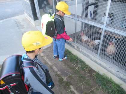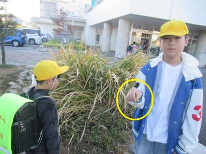 大きなカマキリを捕まえた子がいます。その後、逃がしてあげていました。