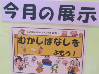 今、図書室では、「むかしばなしをよもう」の展示中です・・・ 楽しそうな昔話がたくさんあります。ぜひ!