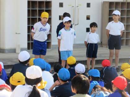 三成ピック 公開日 2024/11/14 更新日 2024/11/14 3年生 4種目(50m走、走り幅跳び、ソフトボール投げ、鉄棒)の中から、1種目を自己選択し、記録会に臨みます・・・ 「開会式」など、運動委員会が企画・運営します。