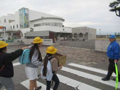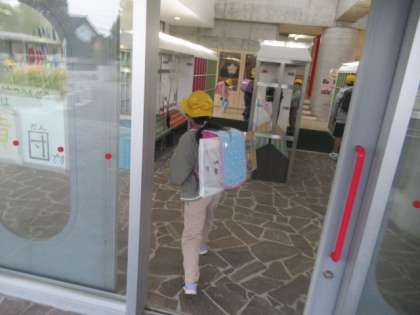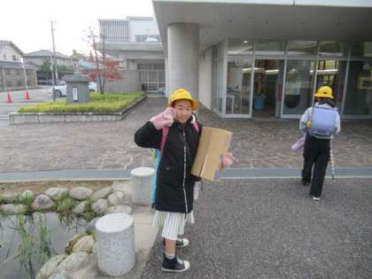 ダンボールを抱えたりランドセルに挟んだりして登校してくる子供たちがいます。