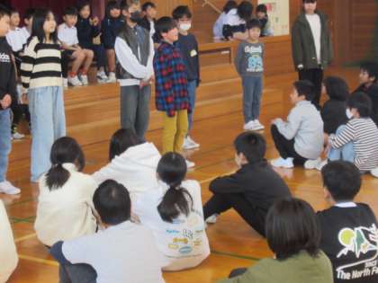 ドッジボール大会(高学年) 公開日 2024/11/25 更新日 2024/11/25 5年生 今日から、「寒さに負けない体をつくろう!」と、運動委員会主催の「ドッジボール大会」が始まります。 今日は、高学年大会です。 「5年生」vs「6年生」でスタートしますが、ボールに当たったら、相手チームに加わります。さてさて、結果は・・・ 他の学年が、見学? 応援? に来ています・・・