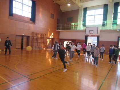 ドッジボール大会(高学年) 公開日 2024/11/25 更新日 2024/11/25 5年生 制限時間は「5分」ですが・・・ 時間の経過とともに、ボールが「2個」「3個」と増やされます。 複数のボールに気を配らなくてはいけません・・・ 下級生が見守ります・・・
